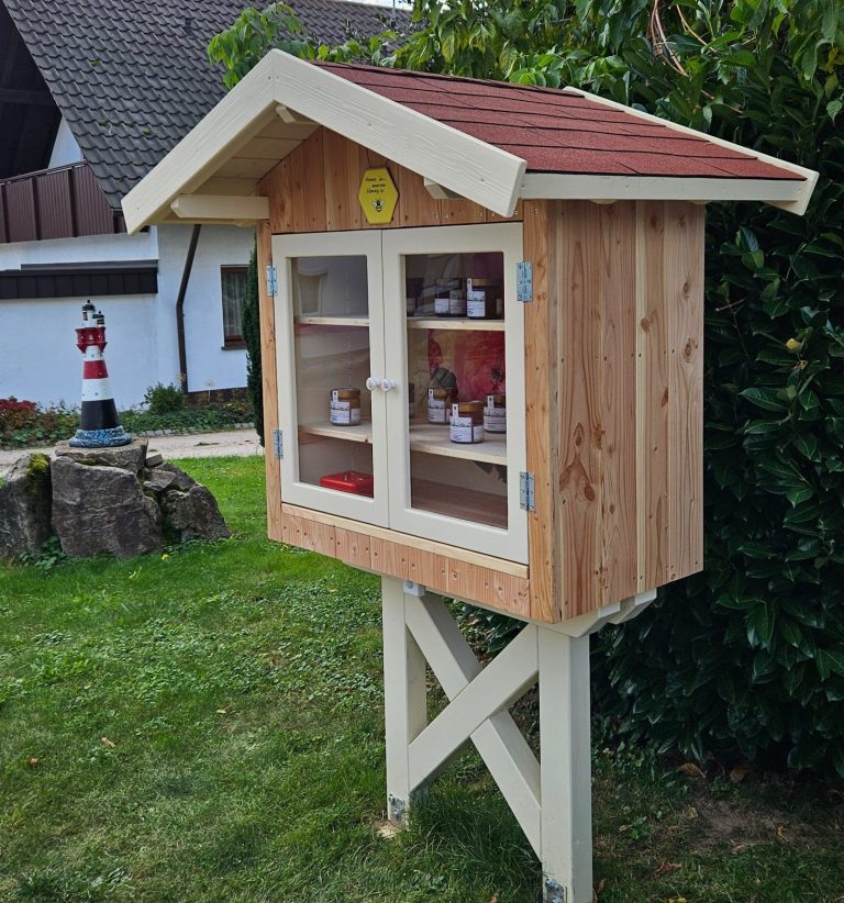Kommen Sie an unserem Honigverkaufsschrank und wählen aus unseren Sorten ihren Lieblingshonig aus.